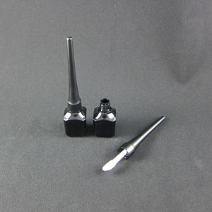 - Shiny black plastic cap w/ doe foot applicator, transparent bottle, PE wiper