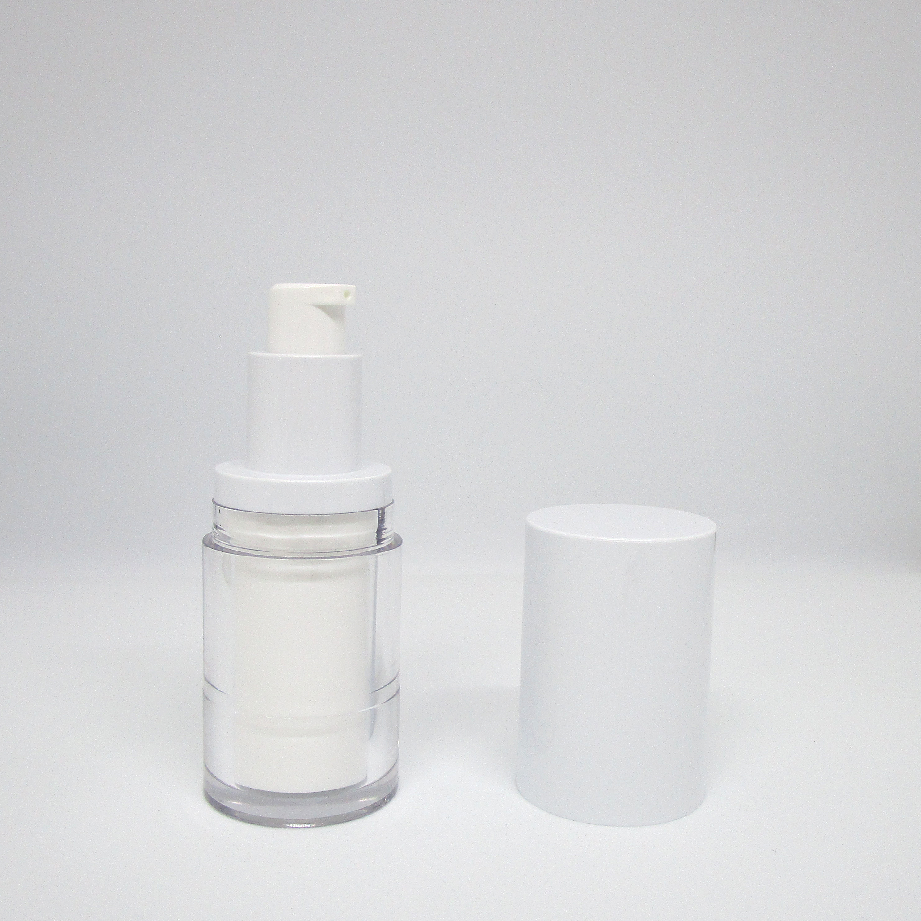 ABS cap ; PMMA outer bottle with PP inner bottle ; PP pump with ABS collar