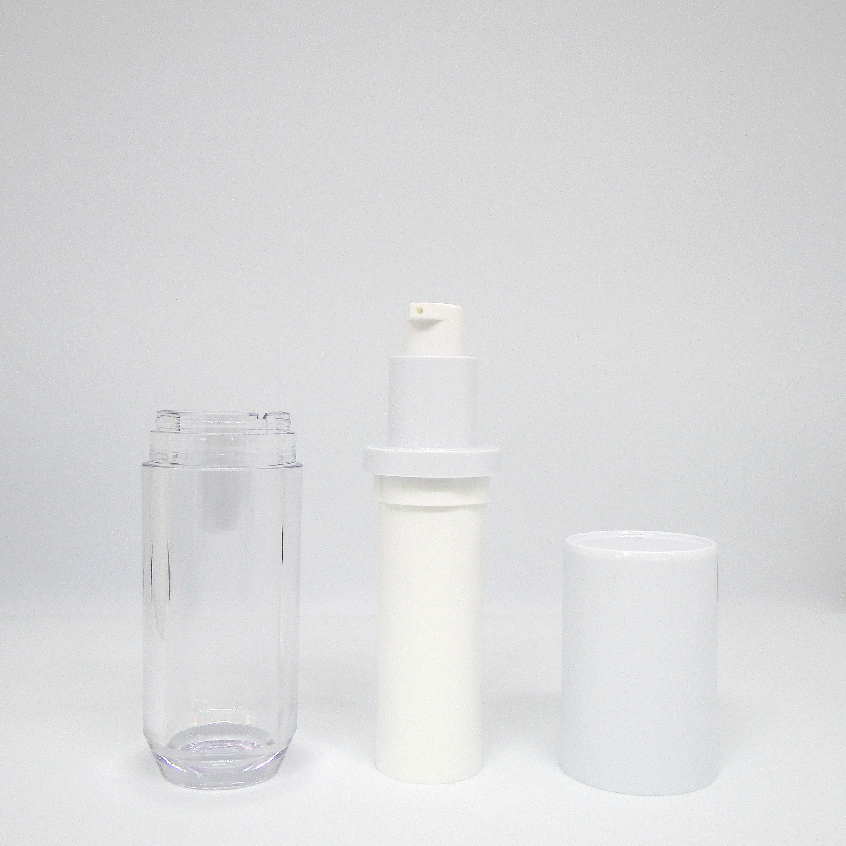 ABS cap ; PMMA outer bottle with PP inner bottle ; PP pump with ABS collar